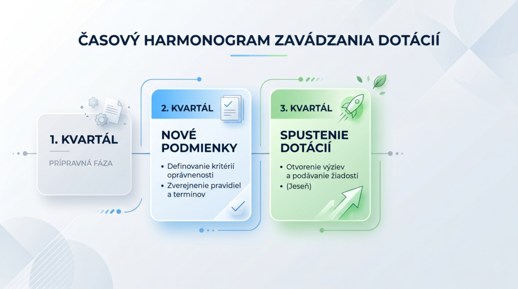 - spustenie dotácií: 3. kvartál (jeseň)